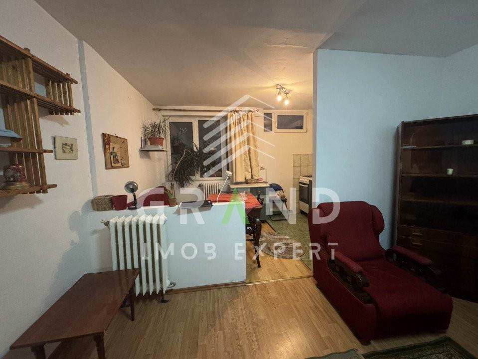 Garsoniera este situata , într-o zonă liniștită și bine conectată, cu acces la spatii comerciale, statii de autobuz, spatii verzi, farmacii precum si alte facilitati. Aceasta este decomandata, cu o suprafață utilă de 30 mp și se află la etajul 1. Acesta dispune de un dormitor cu pat matrimonial, o bucătărie si 1 baie .