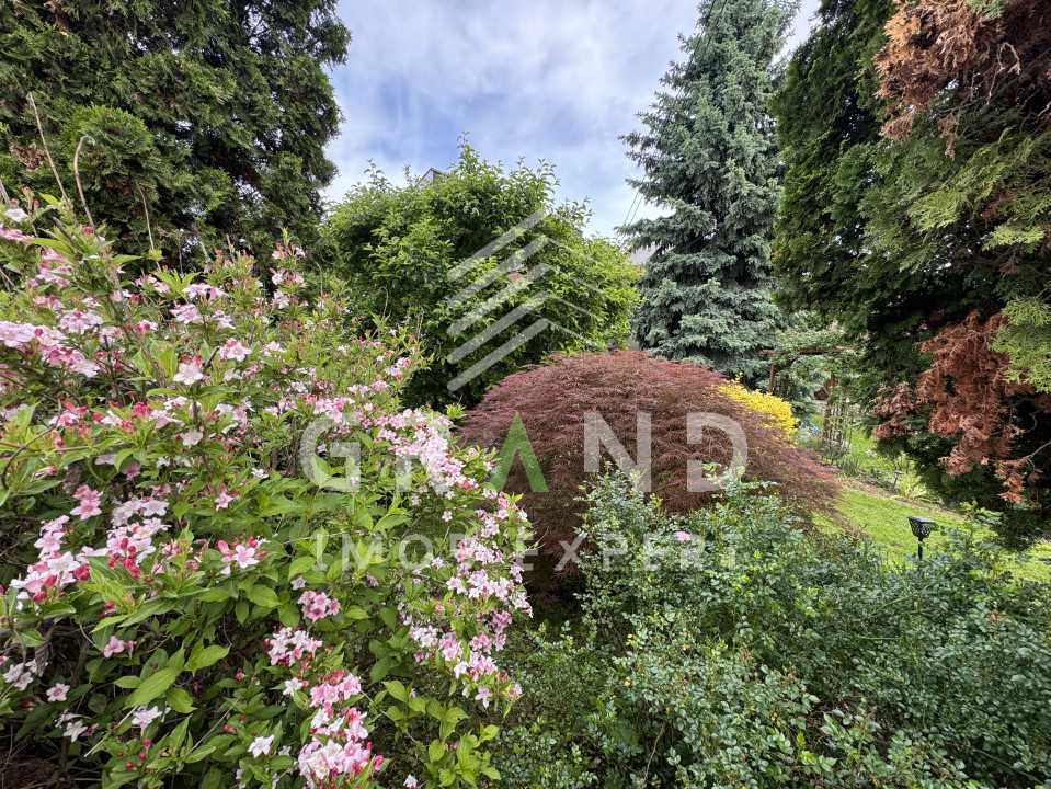 O grădină superbă, cu pomi fructiferi și arbori ornamentali – un colț de natură chiar în oraș.